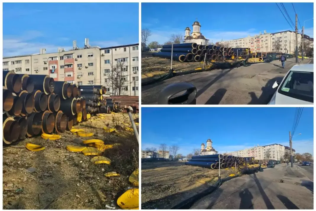 Ce se întâmplă acum, după doi ani? Nu avem niciun parc. Dimpotrivă. Terenul a ajuns, de luni bune, spațiu de depozitare pentru conductele de termoficare pe care primarul vrea să le schimbe. Vă reamintim și că, în campanie, Vergil Chițac scria pe site-ul său că nu este necesară schimbarea conductelor, pentru că există soluții mai bune pentru oraș.