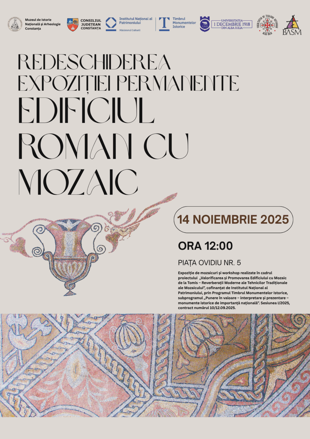 Istorice, Sesiunea I/2025, Valorificarea și Promovarea Edificiului cu Mozaic de la Tomis – Reverberații Moderne ale Tehnicilor Tradiționale ale Mozaicului (contractul cu numărul 10/12.09.2025).