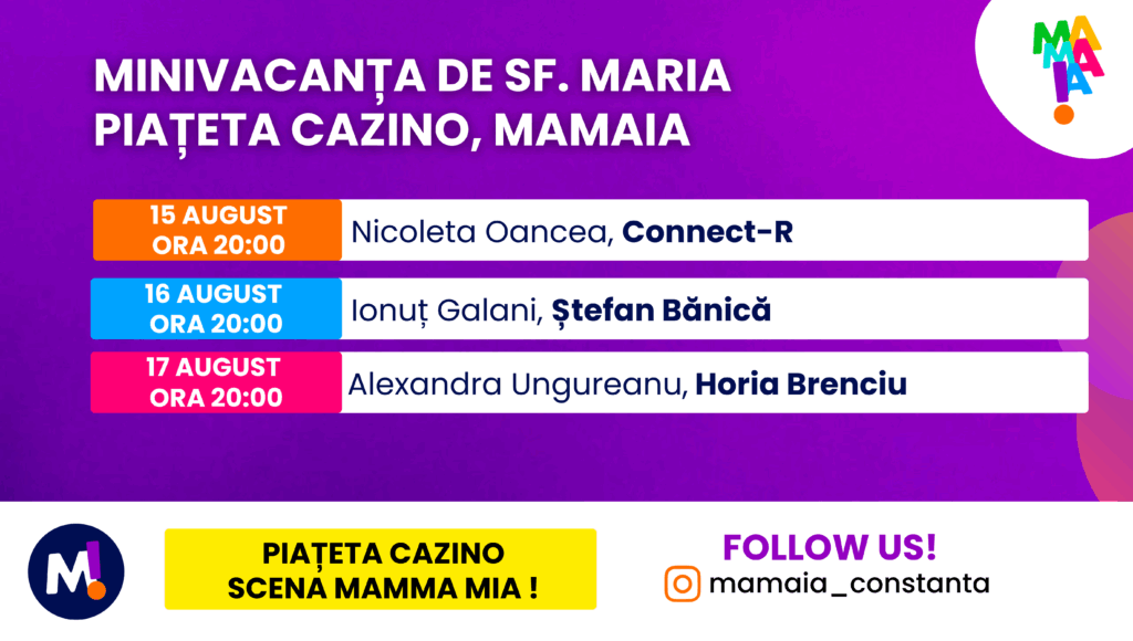 Seara, în Piațeta Cazino din Mamaia, publicul va trăi trei nopți consecutive de muzică live, cu