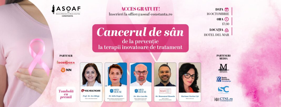 Asociația Oportunități de Afaceri pentru Femei – Constanța organizează evenimentul Cancerul la sân – prevenție și terapii inovatoare, joi, 16 octombrie 2025, ora 17.30, la Hotel del Mar, Mamaia.