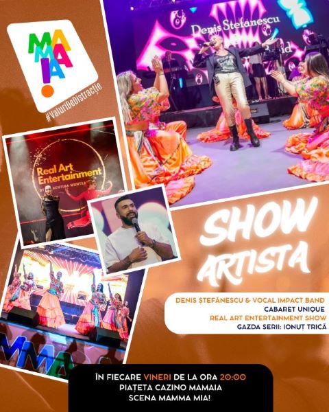 Vineri, 25 iulie, este despre spectacol, emoție și ritm live la Show Artista – cu Denis Ștefănescu & Vocal Impact Band, Cabaret Unique, Real Art Entertainment Show și Ionuț Trică.