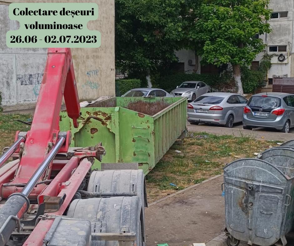 În săptămâna 𝟐𝟔.𝟎𝟔 – 𝟎𝟐.𝟎𝟕.𝟐𝟎𝟐𝟑, benele pentru colectarea des̗eurilor voluminoase vor fi amplasate în cartierul Badea Cârțan, lângă Școala nr.36.