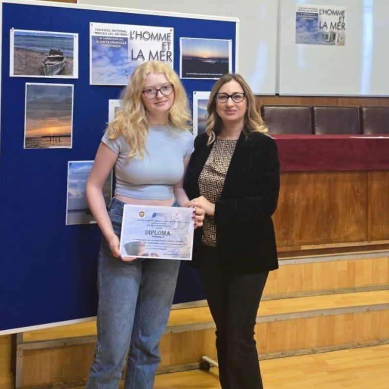 Ștefania Anamaria Sescioreanu (clasa a XII-a B, Colegiul Național „Ovidius”) a fost răsplătită cu Mențiune pentru textul literar „Le poète et la mer”, un exercițiu de sensibilitate și rafinament stilistic ce confirmă vocația generației sale pentru literatură și francofonie.