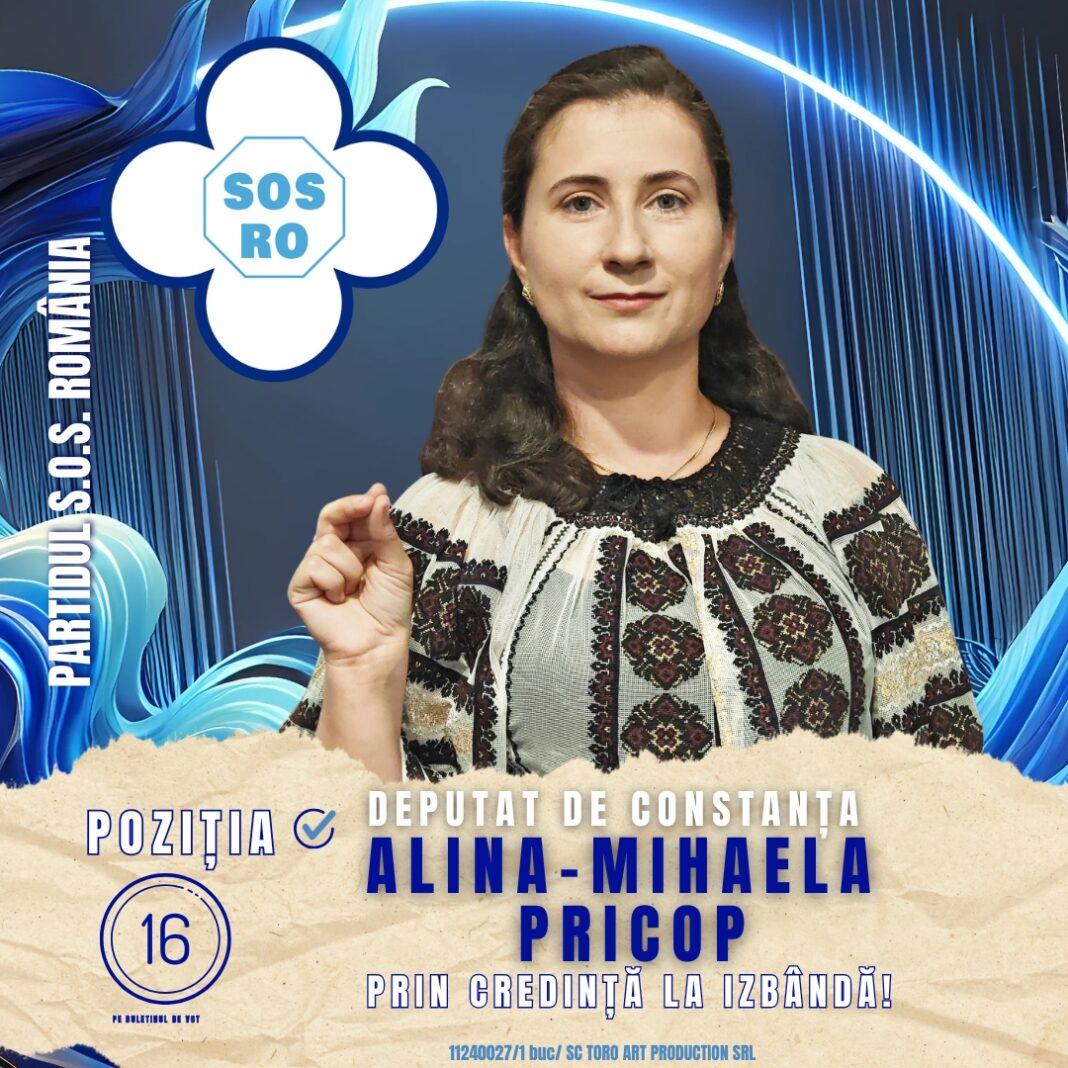 Cu o viziune clară și un angajament ferm, Alina Mihaela Pricop își dorește să aducă o schimbare reală, atât la nivelul Constanței, orașul în care a studiat și lucrează, cât și la nivelul întregii țări. Crezul său este unul simplu, dar puternic: „M-am alăturat S.O.S. România cu crezul că țara noastră chiar poate deveni o Elveție a Estului și Constanța o Elveție a României. Acest ideal al păcii, justiției și progresului numai în programul S.O.S. România l-am aflat și în el m-am regăsit, pentru creșterea și împlinirea comunității constănțene, pe care o iubesc.”